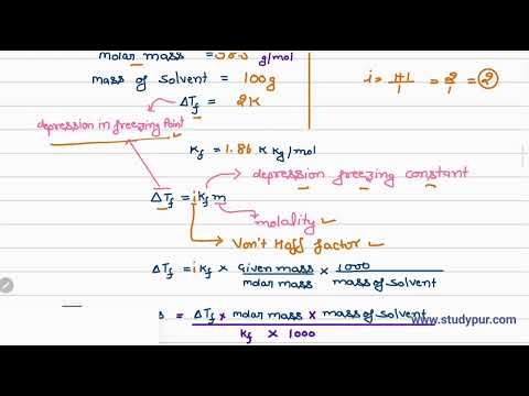 Calculate the amount of NaCl (M = 58.5 g mol-1) that must be added to 100 g of water so that freezing point is depressed by 2 K. Kf for water is 1.86 K/m